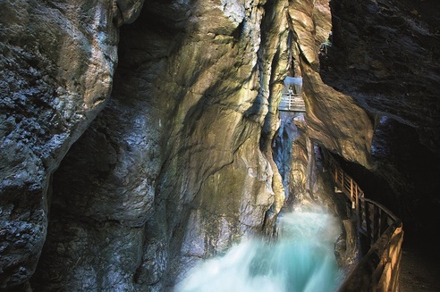 Die Liechtensteinklamm ist bestimmt eine der längsten, tiefsten und beeindruckensten Schluchten in den Alpen. Das einzigartige Naturschauspiel ist bekannt für einen unvergesslichen Ausflug der besonderen Art - ein Erlebnis für die ganze Familie. Die tosenden Wasserfälle und die reißenden Wassermassen haben sich über Jahrtausende immer tiefer in den Berg geschnitten und eine Schlucht entstehen lassen. Die Felsen stehen stellenweise so eng und hoch, dass der Himmel nur mehr als kleiner Streifen zu erkennen ist.Wenn zur Mittagszeit die Sonne zwischen die Felswände auf den feinen, staubartigen Sprühregen des Schleierfalls leuchtet, bietet sich dem Besucher ein zauberhaftes Bild in Regenbogenfarben. Bereits 1875 faszinierte dieses alpine Naturschauspiel die Menschen so sehr, dass die Schlucht, durch eine Spende von Fürst Liechtenstein, für die breite Öffentlichkeit mit Brücken und Stegen als Sommer-Ausflugsziel zugänglich gemacht wurde.