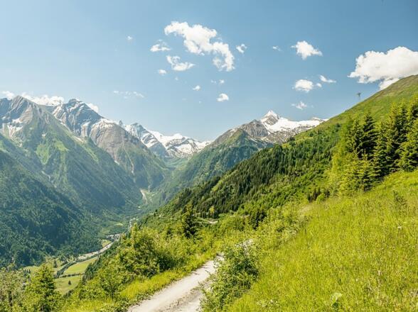 Vom Gemeindeamt Kaprun fahren Sie an der Kaprun Information vorbeiüberqueren die Brücke und biegen in Richtung Schulstraße ein; nach ca.80 m biegen Sie rechts in die Schaufelbergstraße in Richtung JausenstionUnteraigen bzw. Stangerbauer; ca 100 m vorm Stangerbauer fahren Sie rechts bergwärts bis zur Maiskogel Alm Ranch. Hier haben Sie den höchsten Punkterreicht; nun gilt es den Weg ins Tal anzutreten; Ausgangspunkt ist derAstenweg Richtung Bachlertrail, Schneckenbauer, (Güterweg Aubauer)bis zur Aubrücke. Vor der Aubrücke biegen Sie links ab und kehren überden Tauernradweg zurück zum Gemeindeamt