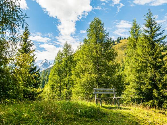 Bei der Maiskogel-Bergstation startet die Hüttenrunde: Der flache Weg führt in westlicher Richtung durch eine mystische Waldlandschaft direkt zur ursprünglichen Unterbergalm (1.570 m). Weiter geht es sanft ansteigend in nördlicher Richtung zum Aussichtspunkt Alpengasthof Glocknerblick (1.670 m). Der Weg führt talwärts weiter zur Maiskogel Alm Ranch (1.540 m) mit Streichelzoo. Bevor es wieder retour ins Tal geht, lohnt sich noch eine letzte Einkehr in die Saulochalm (1.570 m), direkt unterhalb der Maiskogel-Bergstation.