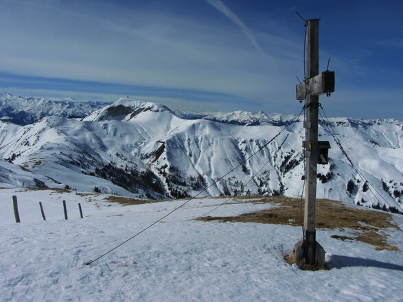 Aufstieg Klingspitze: Los geht es neben dem Tellerlift nach oben. Am Ende der Piste nach Osten (leicht links) am Hotel Hintermoos vorbei und dann im Rechtsbogen kurz entlang einer Straße. Nun den ersten freien Hang nach Süden (links) aufsteigen. An der Neualm vorbei und immer noch im freien Gelände nach Süden bis Südosten ansteigen. Auf ca. 1.350 m geht man in den Wald und steigt in einer angenehmen Spur in diesem weiter an. Man erreicht wieder freies Gelände auf dem man in südlicher Richtung querend weiter ansteigt. Jetzt muss die kurze, aber sehr steile Geländekante, am besten mit einer kurzen Querung nach Osten (links) überwunden werden. Am breiten Rücken angelangt geht es sich wieder angenehm über die Marbachhöhe und kurz steil immer nach Süden auf die Klingspitze. Berg Heil!