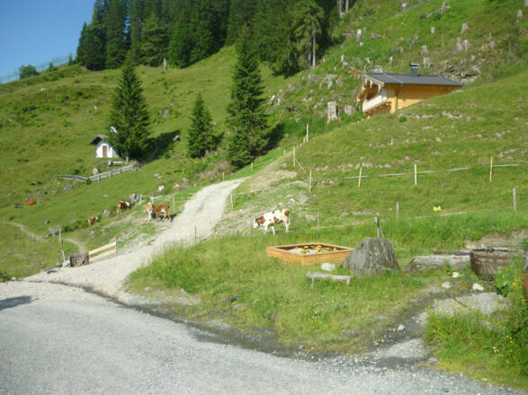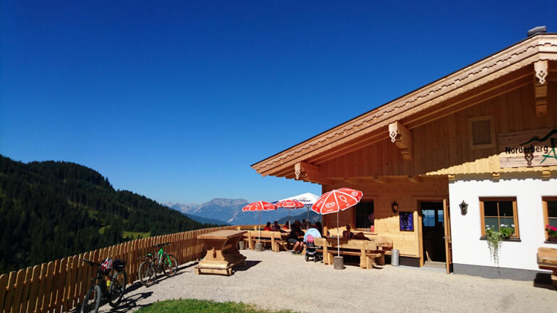 Auffahrt mit der Markbachjochbahn. Dann den Forstweg entlang bis zur Norderbergalm.