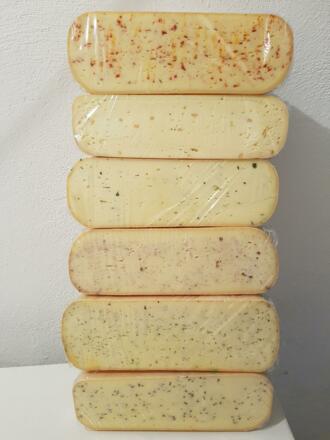 Schnittkäse - Natur, Bockshornkleesamen, Chili, Peperoni, Kräuter der Provence, Knoblauch-Basilikum, Schnittlauch (saisonal), Bärlauch (saisonal), Kümmel, Pfeffer, uvm.