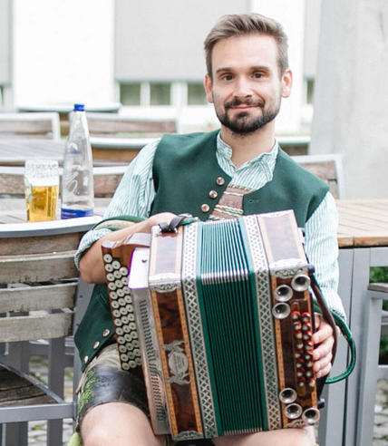 Ich bin in einer Familie aufgewachsen, in der viel Volksmusik gespielt wird. Mit sechs Jahren begann ich mit der diatonischen Harmonika der “Ziach”. Es folgte mit elf Jahren das Klavier, mit sechzehn der Kontrabass.