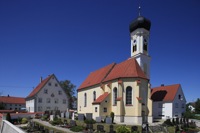 Nach dem Besuch der Klosterkirche radeln wir weiter ins 2 km entfernte Arlesried. Hier folgen wir zunächst der Maria Baumgärtle Straße bis zur Schulstraße, um danach auf der Erkheimer Straße Arlesried wieder zu verlassen. Die ca. 8 km Wegstrecke nach Unterkammlach gestaltet sich sehr abwechslungsreich - durch Wiesen und Wälder – bergauf und bergab. Wir halten uns an der Gabelung zunächst links Richtung Untererlenberg, radeln weiter durch St. Johann und biegen nach weiteren 200 m rechts ab. Es geht wieder durch den Wald und durch Felder. Schließlich erreichen wir auf der St. Johann Straße Unterkammlach.