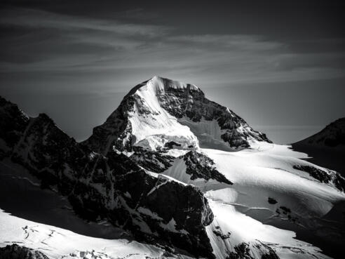 Der Mönch erhebt sich mit 4107 Metern über Meer als zentraler Viertausender im weltberühmten Dreigestirn der Berner Alpen. Eingerahmt von Eiger und Jungfrau bildet dieser imposante Gipfel das verbindende Herzstück der drei legendären Berge und fasziniert Bergsteiger aus aller Welt mit seiner markanten Silhouette und technisch anspruchsvollen Routen.