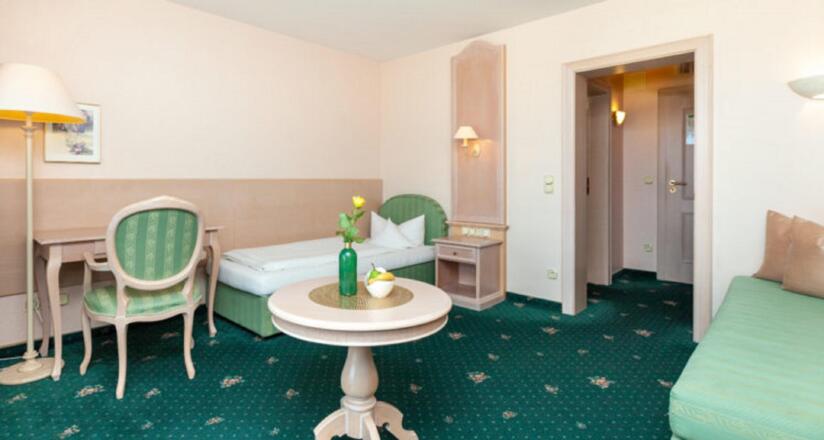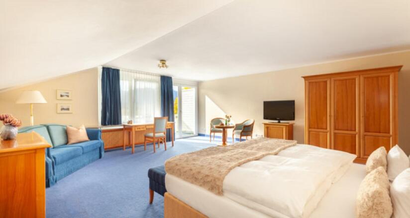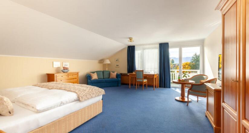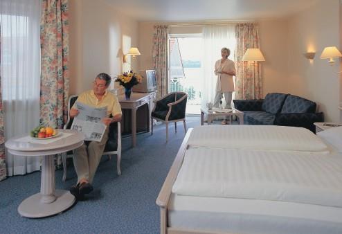 Erleben Sie eine Oase Erholung mit bevorzugter Panorama-Lage: Im Westen zum See mit eigenem Privatstrand, nach Süden hin blicken Sie auf Wiesen und Berge. Genießen Sie die behaglichen Zimmer, kostenloses WiFi auf den Zimmern, die Annehmlichkeiten unseres Hauses mit dem professionellen Therapieangebot eines modernen Medical Wellness Resorts. Behaglichkeit und ein harmonisches Ambiente prägen die Atmosphäre des Hauses. Lassen sie sich verwöhnen in unserer freundlichen und angenehmen Atmosphäre.SonstigesDie Bezahlung erfolgt in bar oder mit EC-/Kreditkarte vor Ort.Stornierungen, die bis zu 14 Tage vor Anreise erfolgen, sind kostenfrei. Spätere Stornierungen werden mit 90% des Gesamtpreises berechnet.Anreise von 14:00 Uhr bis 17:00 Uhr.Abreise von 07:30 Uhr bis 10:00 Uhr.Haustiere sind nicht erlaubt.Die Schlüsselübergabe erfolgt über unsere Rezeption.Die Höhe der Kurtaxe beträgt 2,20€ und wird bei Abreise berechnet.Bereits im Preis inklusive: Handtücher, Bettwäsche, Endreinigung, WLAN, Parkplatz, Vollpension