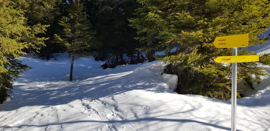 Vom Parkplatz geht es zuerst ein kleines Stück zurück, bis nach rechts hinauf der Weg abzweigt. Nun durch den Wald hinauf zur Forststraße, entlang der Forstraße leicht bergab um nach der Kreuzung über eine Waldschneise aufzusteigen. Nachdem die nächste Forststraße erreicht wurde, geht es gleich weiter hinauf durch den relativ dichten Wald bis wieder eine Forststraße gequert wird. Nun dem Wegweiser Richtung Morgenkogel folge. Nicht der Forststraße nach rechts (Süden) folgen, hier sind Wildfütterungen. Nun immer weiter logisch hinauf bis kurz vor dem Morgenköpfl der Grat erreicht wird. Diesem nun immer auf den Gipfel zu folgen und über den Schlußhang hinauf.