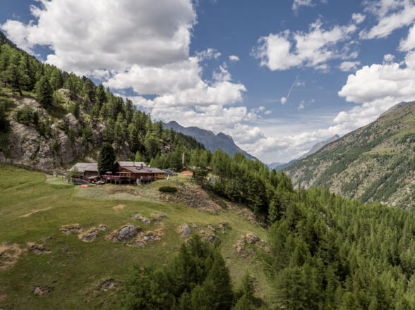 Eine mittelschwere (E-)Bike-Tour in Gurgl. Nach dem Einrollen auf dem Asphalt geht es beim Verlassen der Bundesstraße weiter am Schotterweg. Die folgenden Höhenmeter zur Lenzenalm sind recht gleichmäßig verteilt. Anhalten und Blick genießen lohnt sich, denn gegenüber schwingt sich die Timmelsjochstraße auf einen der höchsten Alpenpässe.