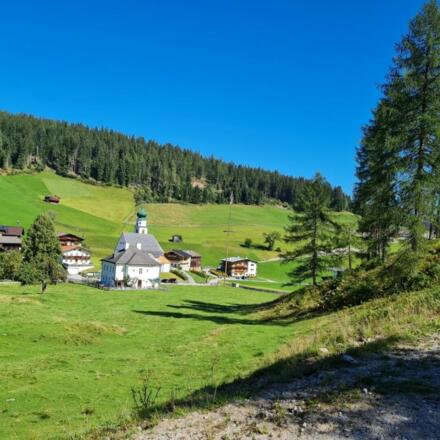Start ist in Mühltal beim Färberwirt. Fahre der Straße entlang Richtung Thierbach. Biege nach der Kirche links ab und folge der Schotterstraße bis zur Schatzbergalm.