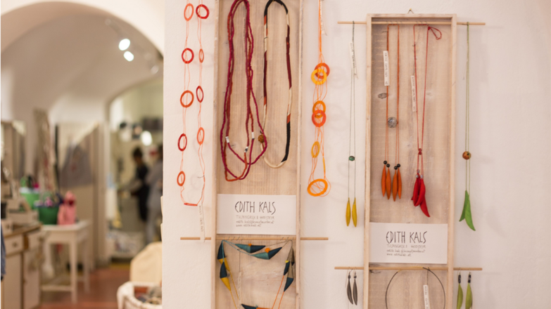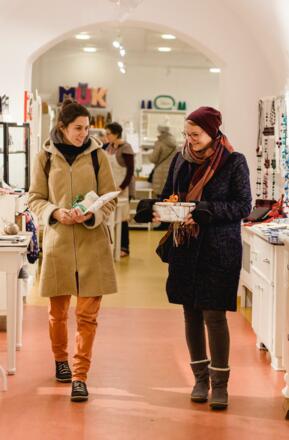 Einzigartige Gemälde und andere Kunstobjekte, Textiles, Schmuck, Keramik, Bücher und ausgewählte Kulinarik, werden von Mittwoch bis Samstag von 10 bis 18 Uhr im mük ausgestellt und verkauft (im Dezember täglich).