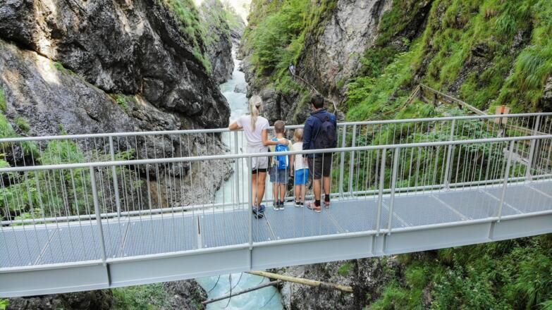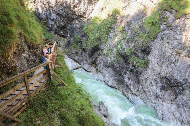 Sie tost laut und unbeugsam. Die Lammer, der reißender Gebirgsbach, ist stärker als Gestein und bahnt sich ihren Weg durch die mystische Klamm aus der Eiszeit. Wasserkraft, Licht-und Schattenspiele – all das finden Wanderer und Abenteuerlustige in der Lammerklamm in Scheffau. Die „Klamm“, seit 1978 Naturdenkmal, ist als glitzerndes Naturspektakel bekannt geworden. Zu Fuß erschließen Sie das beeindruckende Kerbtal, das beinahe einen Kilometer lang und etwa 20 Meter tief ist, über gesicherte Wege und Steige. Der erste Teil, „die dunkle Klamm“, ist der abwechslungsreichste Abschnitt der Wanderung und zeigt, wie sich das Wasser über Jahrhunderte stetig und unaufhaltsam in das Gestein hineingefressen hat. Entlang gut befestigter Steige erfolgt der Weg nun wieder zurück. Über eine Engstelle führt eine Brücke, nach deren Querung Sie auf die andere Seite der Klamm gelangen. Kurz darauf ermöglicht ein attraktiver „point of view“ eine wunderschöne Aussicht auf das Tennengebirge. Hungrig und durstig nach diesen Eindrücken? Auf den letzten Metern bergab kommen Sie direkt zum gemütlichen Landgasthof Lammerklause. Highlight, für kleine Entdecker, ist die Sage „Die Lammerklamm, ein besonderes Liebesschloss aus ferner Zeit“. Schilder entlang der Wanderung erwecken die Geschichte über Nixen, Riesen, Zwerge und die Liebe zum Leben.