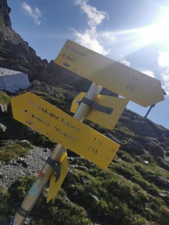 Entweder am gleichen Weg retour oder Abstieg über Grafmartalm und Peeralm nach Navis, mit dem Bus nach Matrei, per Bahn nach Innsbruck. (hier vorher Buszeiten heraussuchen!)