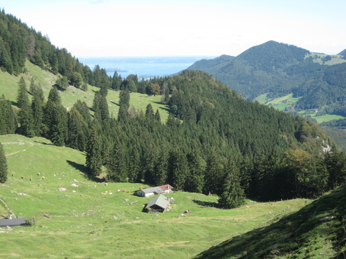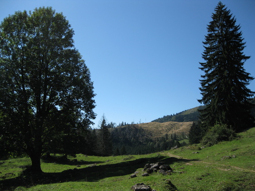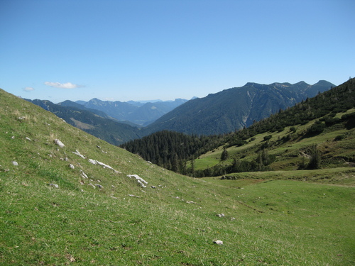 Weiter geht’s bergan Richtung Süden, bis nach ca. 1,5 km auf einer großen Lichtung – unterhalb der Baumgarten-Alm - der 10er Aufstieg von Hainbach auf Ihren 10er Weg trifft. Sie folgen nun dem Pfad, der den Schoßbach bis hinauf zu seinem Ursprung unterhalb der geschlossenen Klausen-Hütte begleitet. Hier können Sie rasten und den Ausblick auf das imposante Panorama der Hochries mit ihren Nachbarbergen genießen. Wir empfehlen Ihnen an dieser Stelle einen 15 min. Abstecher zum Klausenberggipfel (1548 m) mit seiner unvergleichlichen Aussicht bis zum Chiemsee.