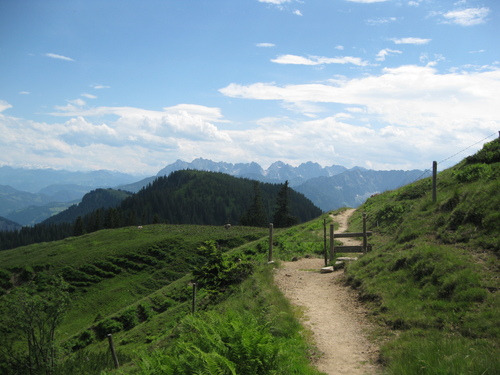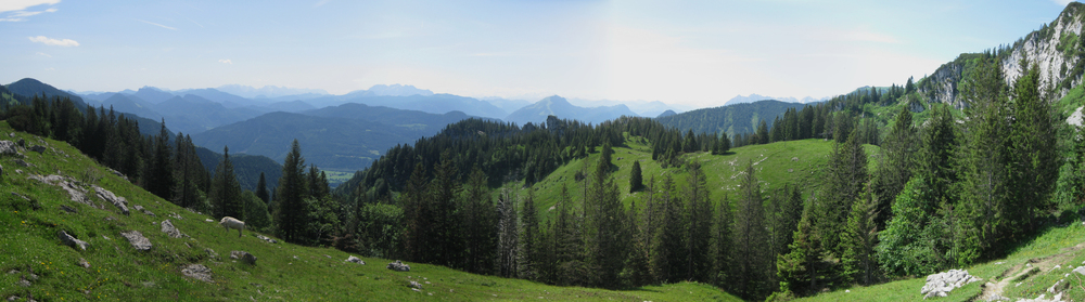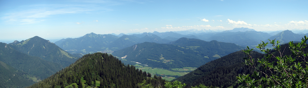 Panoramareiche Tagesbergtour von Aschau aus über die Kampenwand, runter zu den Dalsen-Almen, rauf zum Weitlahner, weiter über Roß-Alm und Geigelstein bis hinab nach Sachrang.