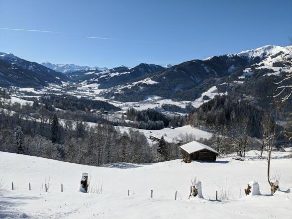 Schöne Winterwanderung, mit herrlichem Panorama in die Kitzbüheler Südberge, bis Oberaigen
