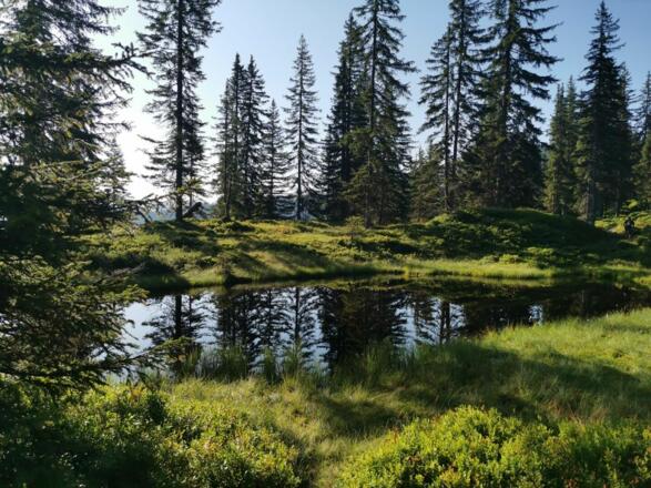 Start der Wanderung ist am Roggenboden. Von hier geht es ca. 5km bergauf zur Horler Stiege. Dann folgen Sie kurz der Forststraße in südlicher Richtung, ehe ein kleiner, gut sichtbarer Pfad nur leicht ansteigend in den lichten Wald abzweigt. Nach einiger Zeit erreichen Sie wieder diesen Fahrweg und folgen ihm kurz. Bevor der Weg flach wird, zweigt der Pfad nach links aufwärts auf freie Bergwiesen ab. Entlang des Gratrückens steigen Sie gemütlich zum Gipfelkreuz des Feldalphorns.