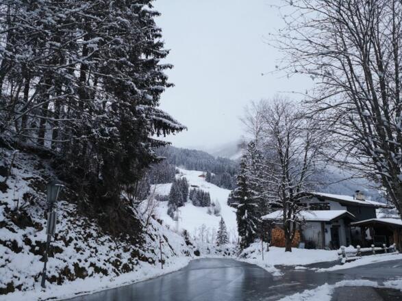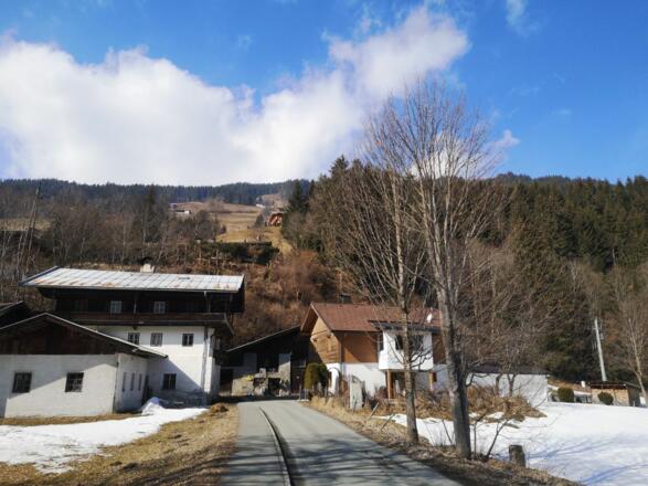 Weiters folgen wir den Weg Richtung Alte Wacht, vorebei an den Siedlungshäusern der Kupfstattgasse. Wir folgen den Wegschildern Richtung Oberhausen/Hechenmoos der Weg führt uns vorbei an malerischen Bauernhäusern und Kapellen. Am Gasthof Hechenmoos wäre die Möglichkeit eines Einkehrschwunges oder auch bei schönem Wetter auf der Terrasse zu verweilen und zu stärken. Weiters queren wir wieder die Straße und wandern schön idylisch neben der Ache zurück nach Jochberg.