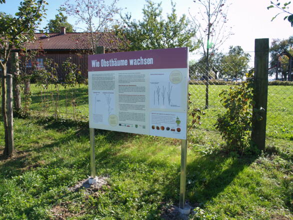 Darüber hinaus gibt es auch einen Obstbaumschnitt-Lehrpfad, der die wichtigsten Grundlagen zum Obstbaumschnitt zeigt. Auf fünf Schautafeln erfahren Sie, wie der Baum vom Pflanzen bis zum hohen Alter geschnitten wird.