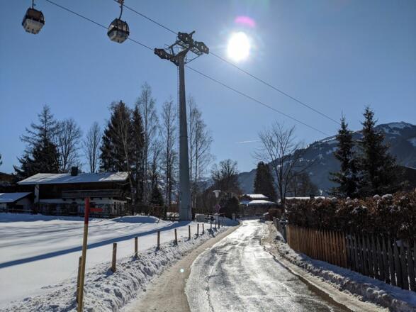 Von der Kitzbüheler Horn Talstation starten wir unsere Wanderung.Wir gehen abwerts in Richtung Bahnübergang, wo wir kurz davor nach rechts in den Ölbergweg einbiegen. Nach ca 5 min kommen wir an der Ölbergkapelle an. Weiter führt uns die Wanderung links neben der Ölbergkapelle den Fußweg hinauf zum Römerweg. Nun folgen Sie nach rechts dem Römerweg, vorbei am Tennerhof, und wieder zurück zur Talstation der Hornbahn.