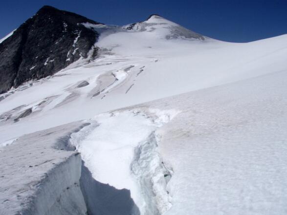 Spaltenreiche Gletscher - entsprechendes Wissen, Können und Erfahrung muss unbedingt vorhanden sein. Ansonsten nur mit Bergführer! Achtung bei Nebel, die Orientierung auf dem Gletscher kann schnell schwierig werden. Die Tour nur bei sicheren Wetterverhältnissen unternehmen. Absolute Trittsicherheit und Schwindelfreiheit erforderlich.