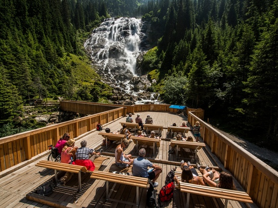 Hier empfiehlt sich die Benützung der kostenlosen Busse, da der Endpunkt Grawalm ca. 10 Autominuten vom Startpunkt Talstation Gletscherbahn entfernt ist.