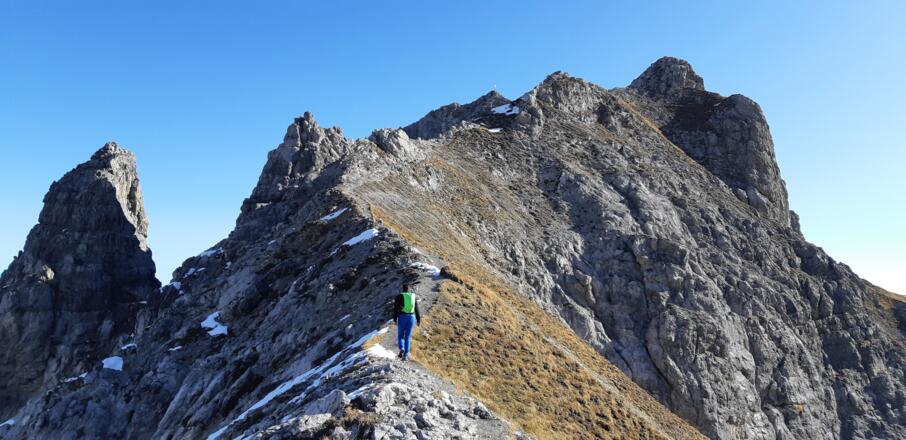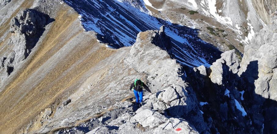 Sehr schöne Rundtour mit einigen ausgesetzten und seilversicherten Passagen im Gipfelbereich.