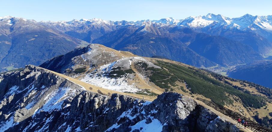 Besonders reizvolle und abwechslungsreiche Bergtour! Einmal der Aufstieg zum Kalbenjoch mit dem Ausblick auf die Kesselspitze. Dann der teilweise ausgesetzte Aufstieg auf die Peilspitze, zuletzt über den schroffen Westgrat. Großartig die Rundumsicht vom Gipfel. Dann der Abstieg über die sanften Mähder zur Blaserhütte. Ein kurzer Abstecher auf die Blaserhütte, evtl. auch noch auf den nahen Blaser sind eine Option.