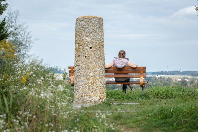 Nach einem Rundblick zu den in der Ferne liegenden Orten und Weilern begeben wir uns zurück auf die Straße, gehen 80 m rechts und folgen dem landwirtschaftlichen Weg, der uns nach einer Rechtsbiegung auf die Ortsverbindungsstraße nach Petershausen führt (alternativ: auf dem Radweg zurück nach Petershausen). Dort gehen wir 100 m rechts und sofort wieder links, um dem Weg in den Wald zu folgen. Im Wald halten wir uns links und wandern bis zum Siedlungsbeginn.
