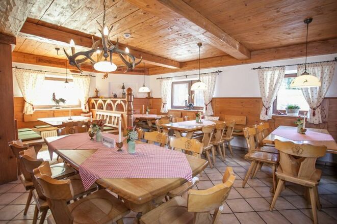 Der Gasthof serviert bayerische Schmankerl und Brotzeiten. Neben den gemütlichen Stuben und dem Wintergarten, lassen sich Speisen und Getränke bei schönem Wetter auch im Biergarten des Gasthofs genießen.
