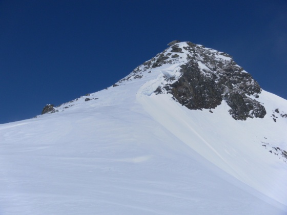 Bei stabilen Bedingungen kann auch über die sehr steile Westflanke entlang des Riegelturms zum Grünsee abgefahren werden.