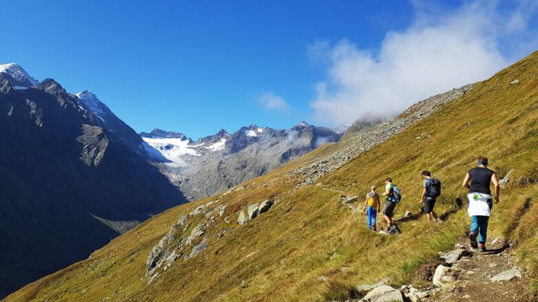 Der Anstieg von der Oberissalm ist gut in einem Tag möglich und führt über traumhaftes Gelände an der Franz-Senn Hütte vorbei zur Rinnenspitze. Ein Abstecher zum Rinnensee lohnt sich auf jeden Fall, bevor der letzte steile, teilweise versicherte Aufstieg zum Gipfelgrat wartet. Ein gewisses Maß an Trittsicherheit ist auf jeden Fall gefordert um diese Tour genießen zu können.