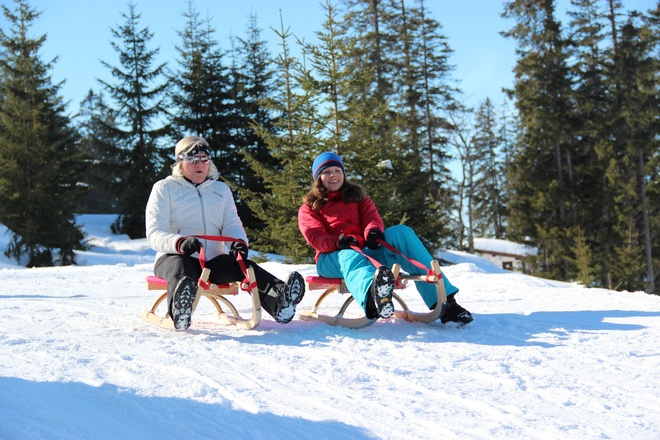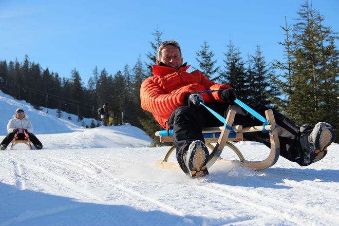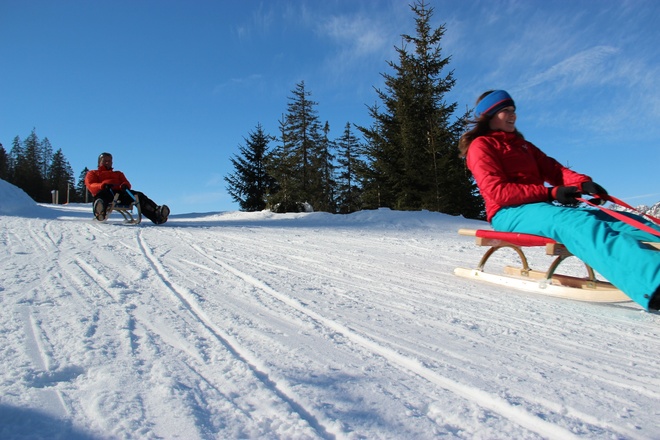 Eigene Rodel oder Rodelverleih beim Adlerhorst.