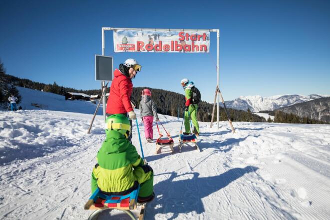 Viel Spaß auf fünf Kilometern garantiert die Rodelbahn am Schatzberg. Vor allem Familien erwartet hier eine tolle Abwechslung zur Skipiste.