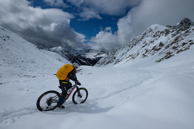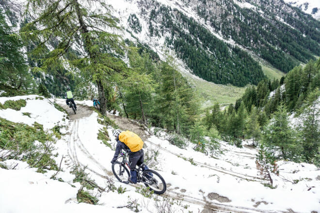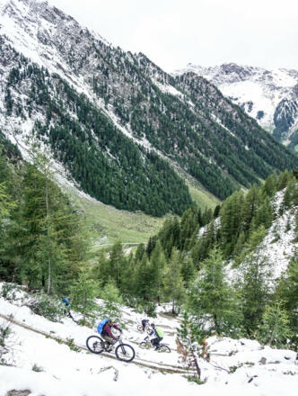 Steile Auffahrt von Hintertux aufs Tuxerjoch welche durch die Seilbahn verkürzt werden kann. Das Highlight ist neben der tollen Landschaft der neu gebaute Trail. Immer einen guten Meter breit schlängelt er sich nie schwierig über zahlreiche Kehren ins Tal.