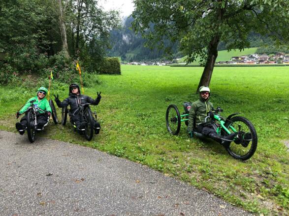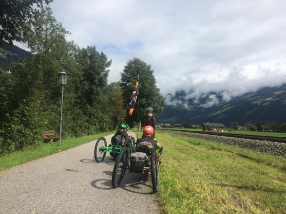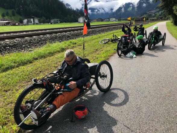 Variante der Alpenüberquerung, da an diesem Tag zuviel Schnee am Tuxer Joch für die Handbiker lag, lange Etappe aber mit unseren Mountainbikes machbar. Genügend Akku einplanen