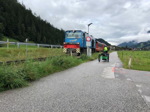 von Vorderlanersbach bis Mayerhofen auf sehr befahrener Strasse, ab dann schöner Radbweg bis hinunter ins Intal . Dort weiter auf Radweg Richtung Innsbruck bis kurz vor Hall dann Achtung durch Unterführung auf die andere Seite und hoch Richtung Tulfes weiter bis nach Nösslach unserem Hotel