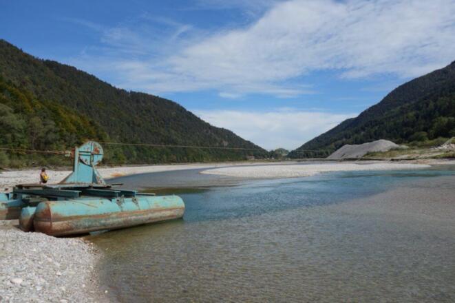 Luitpoldbrücke, Stauwehr, Saalachsee, Gebirgsfluss Saalach, Panorama
