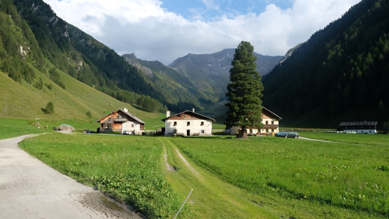 Von Kasern aus gehts, vorbei an schön gelegenen Almhöfen und Weidevieh, einen Forstweg entlang bis ins hinterste Kaserertal. Dort beginnt dann unmittelbar unter der abweisenden Flanke des "Kleinen Kaserers" der Aufstieg zum Kaserer Schartl und zur Frauenwand, mit Erreichen des Bergkamms gelangt auch Hintertux und der gleichnamige Gletscher ins Blickfeld. Weiter gehts dann im Bogen über die Weiße Wand zum Tuxerjochhaus, schön gelegen auf einen Rücken unterm Pfannköpfl. Vom der Sonnenterrasse des Tuxerjochhauses aus lassen sich toll die höchsten Spitze des Tuxer Hauptkamms wie Gefrorene Wand-Spitz, Großer Kaserer und Olperer betrachten. Der Rückweg nach Kasern führt dann schließlich vorbei an einem Speichersee zum Tuxerjoch und von dort aus den neu gebauten fahrradtauglichen Weg hinunter ins Kaserertal.