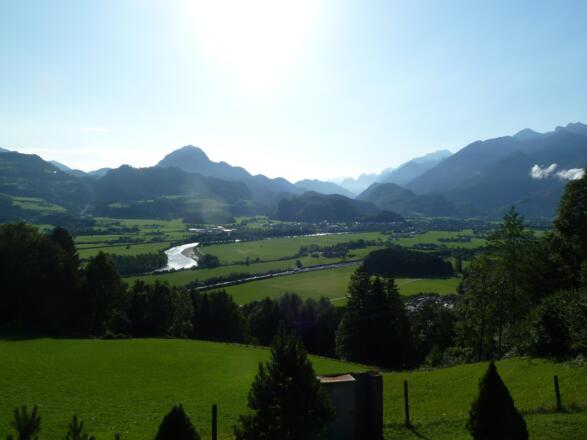 Der Ausgangspunkt dieser Tour ist das "Hotel-Garni-Pension Schöne Aussicht". Folgen Sie den Wegweisern Talabwärts Richtung Weißenbach. Im Tal halten Sie sich rechts, gehen Sie durch die Unterführung Richtung Golling. Nach der Unterführung folgen Sie den Wegweisern Richtung Gasteig. Es folgt ein kurzer steiler Anstieg. Weiter geht es Richtung Kühschwalb/ Parkplatz Schwalberbauer. Vom Schwalberbauer folgen Sie der Straße talabwärts zurück zur "Schönen Aussicht (Stempelstelle, 4 Punkte). Die Stempelstelle befindet sich direkt vor dem Hotel-Garni-Pension Schöne Aussicht.