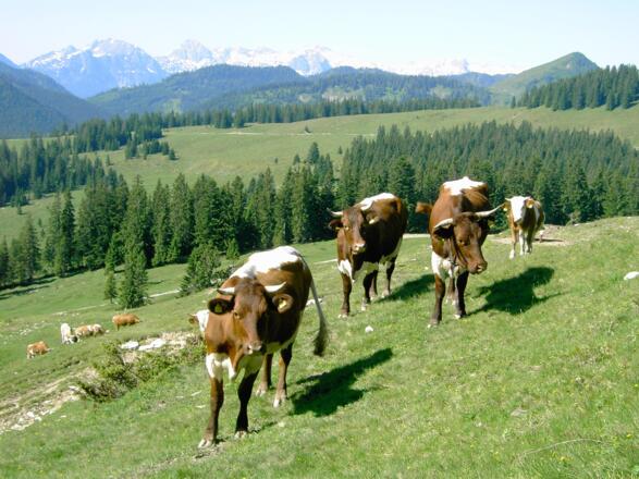 - Kühe auf der Alm sind oft neugierig. Durch die Mutterkuhhaltung entwickeln sie einen ausgeprägten Trieb, ihre Kälber zu schützen. Bewegen Sie sich auf Kuhweiden also ruhig, halten Sie mindestens 20 m Distanz zu den Tieren und streicheln Sie keinesfalls Kälber! Bei Drohgebärden (Scharren, Stampfen) langsam rückwärts weggehen (nicht den Rücken zuwenden). Hunde an die Leine, sie dürfen Kühe nicht verbellen oder gar jagen. Bei einem Angriff muss man sie unbedingt von der Leine lassen.