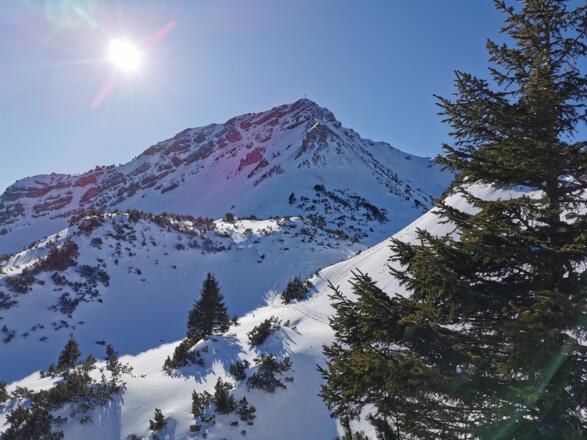 Vom DAV bestens markierte Routenführung für Aufstieg und Abfahrt. Meistens relativ geringe Lawinengefahr. Somit viel Tourenspaß mit toller Aussicht.