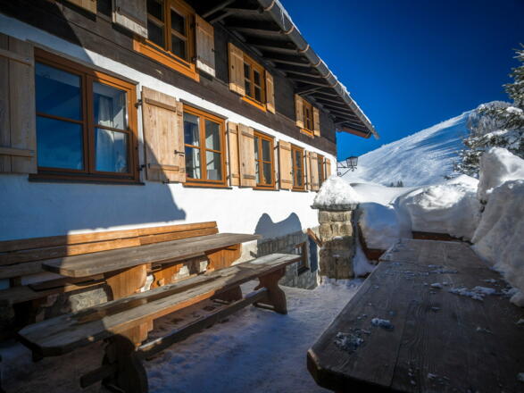 Die Schönfeldhütte liegt eine gute Stunde Fußmarsch oberhalb des Spitzingsees in den Schlierseer Bergen.
