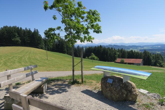 Auf der Schweineburg steht eine Panoramatafel, auf welcher die Allgäuer, Österreicher und Schweizer Berge beschrieben sind.