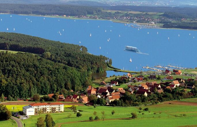 Unser persönlich und familiär geführtes Seehotel liegt auf einem von der Sonne verwöhnten Plateau, in ruhiger, traumhafter Südlage mit Panoramablick auf den Großen Brom ...