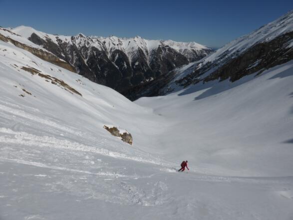 Voraussetzung für die Tour sind absolut stabile Schneeverhältnisse, da nicht nur die Anstiegshänge steil sind, sondern auch aus den seitlichen Flanken Lawinengefahr droht.