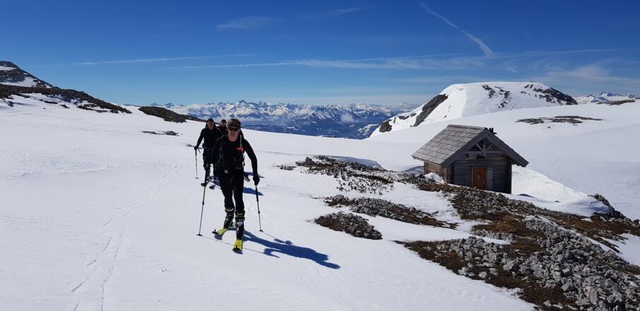 Durch die vielen verschiedenen Expositionen auf der Hochebene müssen immer wieder steilere Hänge gequert werden ==> Hier ist ein sehr gutes Maß an Lawinenkenntnis gefordert.