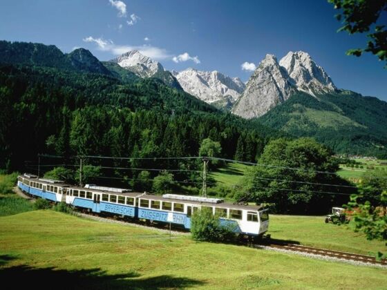 Diese Etappe startet am Kreuzeckhaus. Wer hier starten möchte reist mit der Bahn nach Garmisch-Partenkirchen (stündliche Verbindungen ab München) und fährt mit der Zahnradbahn bis zur Haltestelle Kreuzeckbahn. Von dort geht die Kreuzeckbahn, die uns direkt zum Ausgangspunkt bringt.
