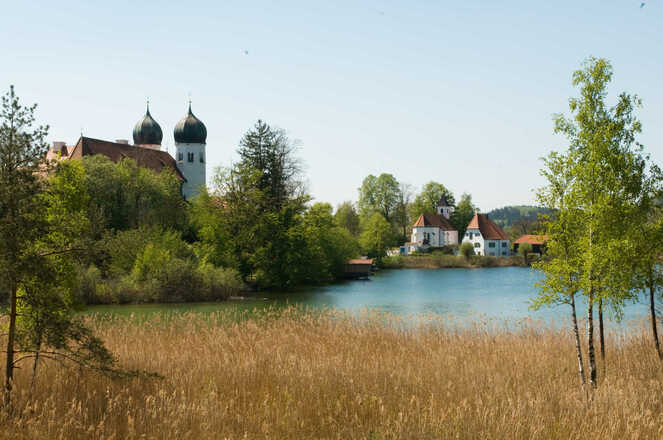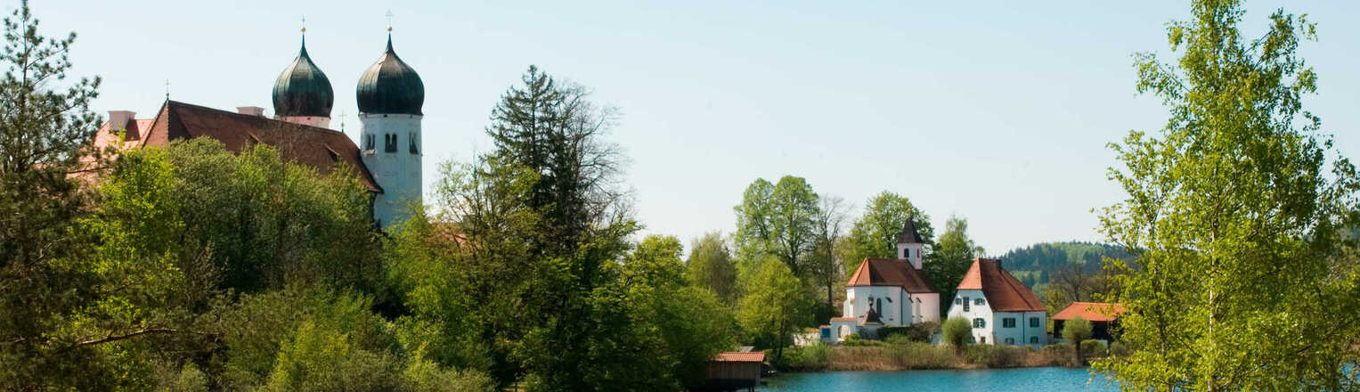 Von Seebruck aus Richtung Seeon-Obing fahren, in ca. 6 km Großparkplatz Kloster Seeon