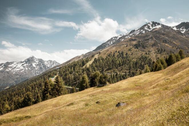 Der Brunnenberg liegt auf der Stillen Seite von Sölden. Als Startpunkt empfehlen wir den Parkplatz der Gaislachkoglbahn. Von dort aus gehen Sie in Richtung Camping Platz, über die Brücke rechts hinauf zur Moosalm. Genießen Sie hier den Panoramablick über Sölden.
