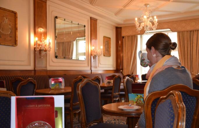 Das Stadt Cafe mit seinem Wiener Kaffeehausambiente verwöhnt Sie unter anderem mit Pralinen - und Eisvariationen.